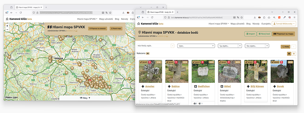- každá mapa je samostatná a má svou vlastní databázi bodů. Hlavní mapa SPVKK je sice "vystrčená dopředu" a v jejím týmu je/bude více badatelů, ale technicky funguje úplně stejně jako mapa kterou si založí kterýkoli badatel sám. Body zatím nelze mezi mapami stěhovat ani kopírovat.