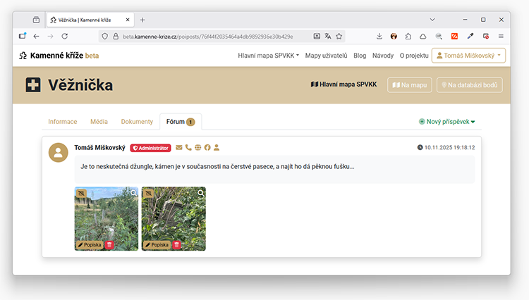 - fotografie může smazat, nebo jim upravit popisku administrátor, správce/vlastník mapy a ten uživatel, který je do systému nahrál
