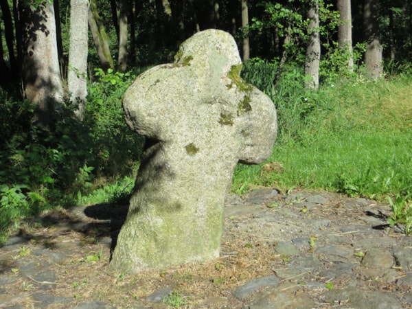 | Popis objektu | Kamenný kříž se silným dříkem a krátkými zaoblenými rameny, nachýlený nazad v úhlu 72°. Stojí poblíž styku státní hranice ČR se zemskou hranicí bavorskou a saskou. |