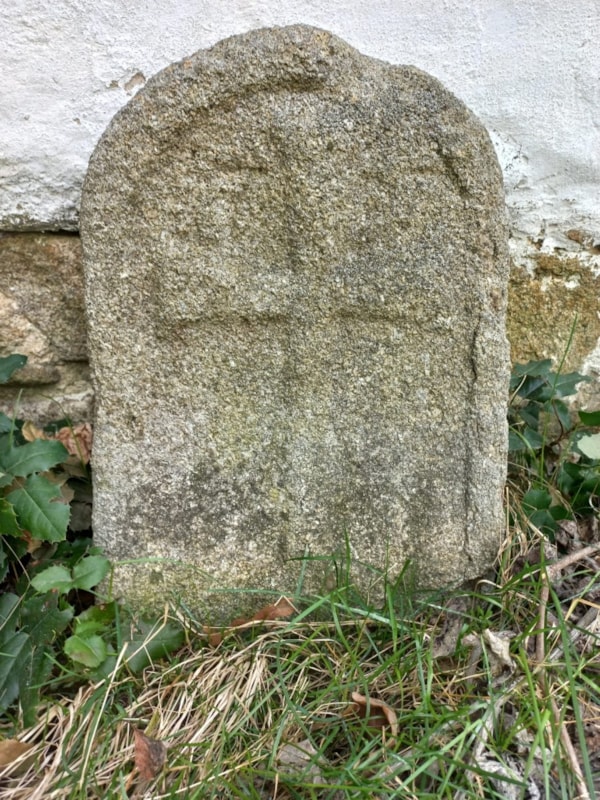 | Popis objektu | Jednostranná deska se zakulaceným temenem. Na přední straně je v orámovaném poli reliéf tlapatého kříže. Nad břevny kříže je dělený letopočet 17 - (?)7. |