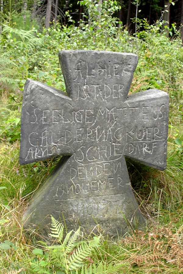 | Historie objektu | Nápis na tomto kamenném kříži říká, že na tomto místě zahynul 19. listopadu 1775 Matteus Gaudernack z Arnoltic. Kříž má tvar templářského kříže a je to jeden z nejkrásnějších smírčích křížů Českého Švýcarska. |
