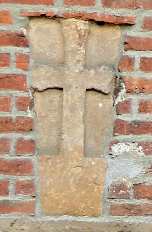 | Popis objektu | Na kameni je reliéf latinského kříže. V soklu je patrná část letopočtu A 166. (?). Dříve stával na zahradě, později zazděn do zdi stodoly. |
