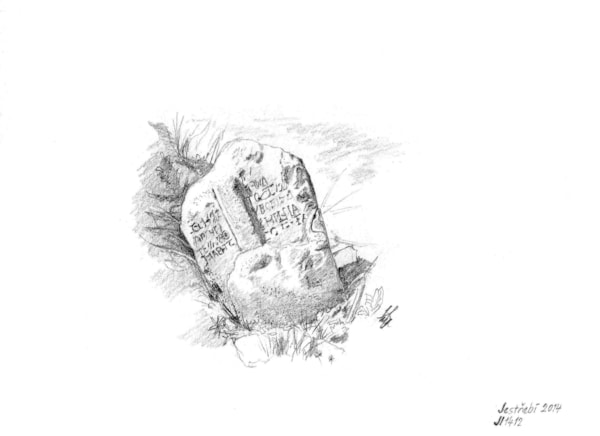 | Historie objektu | Tento kámen je v evidenci Národního památkového ústavu (NPÚ) jako nemovitá kulturní památka pod ev. číslem 4871 chybně zapsán jako „Thingstein“. Evidenční list vystavila p. L. Lefnerová dne 3. 7. 1968 (tehdy byl zřejmě naposledy dokumentován). Součástí jsou dvě fotografie č. 20907 a 20908. Thingstein je hraniční kámen vymezující panství města Jihlavy. Leží na hranicích mezi Stonařovem a Jestřebím v lese Aleje. Je to kvádr se zkosenými rohy. Na temeni kamene je rytý maltézský křížek. Na jedné zkosené straně je rytá značka patřící Šebastianovi Sulemu, který byl sladovníkem a 50 let radním v Jihlavě a od roku 1557 správcem městských statků (panství) Jihlava. Stejná značka se nachází na jednom kameni na hranici mezi Třeští a Loučkami a na dvou kamenech na hranici Třeště a Otína. Jan Večeřa bývalý učitel v Kněžicích v publikaci Domovopis Kněžic a okolí z roku 1937 v kapitole o lese Aleje píše o dalších památných kamenech: Jägerkreuz, cyrilometodějský kříž a babí kříž. Součástí Domovopisu je mapka, kde jsou uvedené památné kameny označeny, kámen Thingstein však není zachycen. V blízkosti cesty ke Stonařovu v lokalitě "U kapličky" je na mapě vyznačen (pravděpodobně kámen) Trugstein, o kterém se literatura nezmiňuje. |