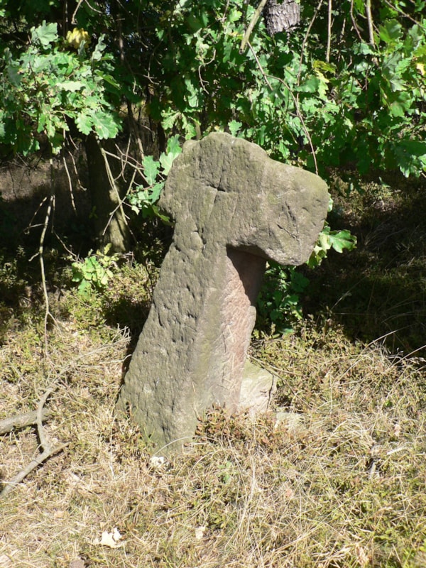 | Popis objektu | Vysoký pískovcový kříž s rozšířenou nohou a odlomenou a poškozenými rameny. Nakloněný kříž se nachází na okraji lesa vedle kříže č.ev.0557. |
